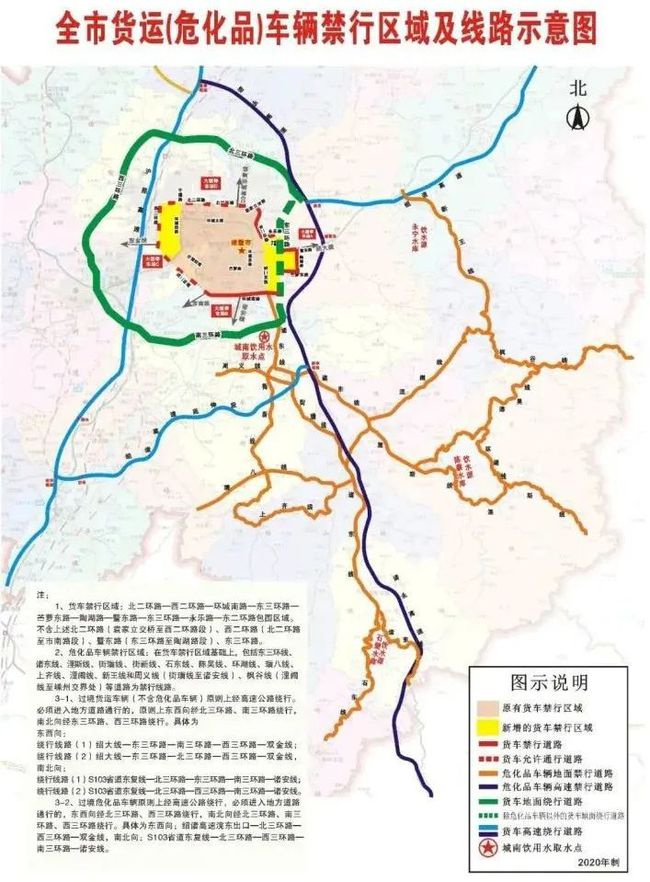 1.禁行線路:在上述貨運車輛禁行區(qū)域基礎(chǔ)上,增加東三環(huán)路、諸東線、浬斯線、街璜線、街新線、石東線、陳吳線、環(huán)湖線、璜八線、上齊線、浬鬧線、新王線和周義線(街璜線至諸安線)、楓谷線(浬鬧線至嵊州交界處)等道路為禁行線路。